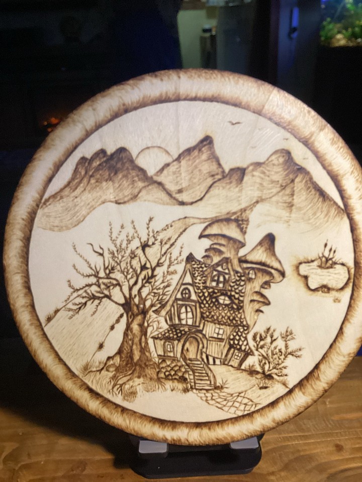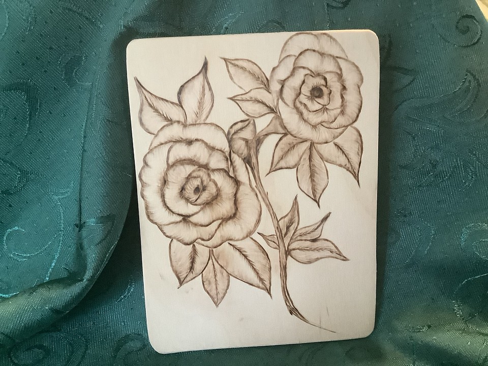 In this project, I learned how important to select a good piece of wood. Pine is the best because it is soft and easy to burn on.. however this piece was not all that great. It was a wonderful learning experience. I started getting good wood and practicing more. Really started loving doing this art.